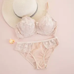 ست تمام دانتل گوشواره ای فنردار ـ رنگ کرمی