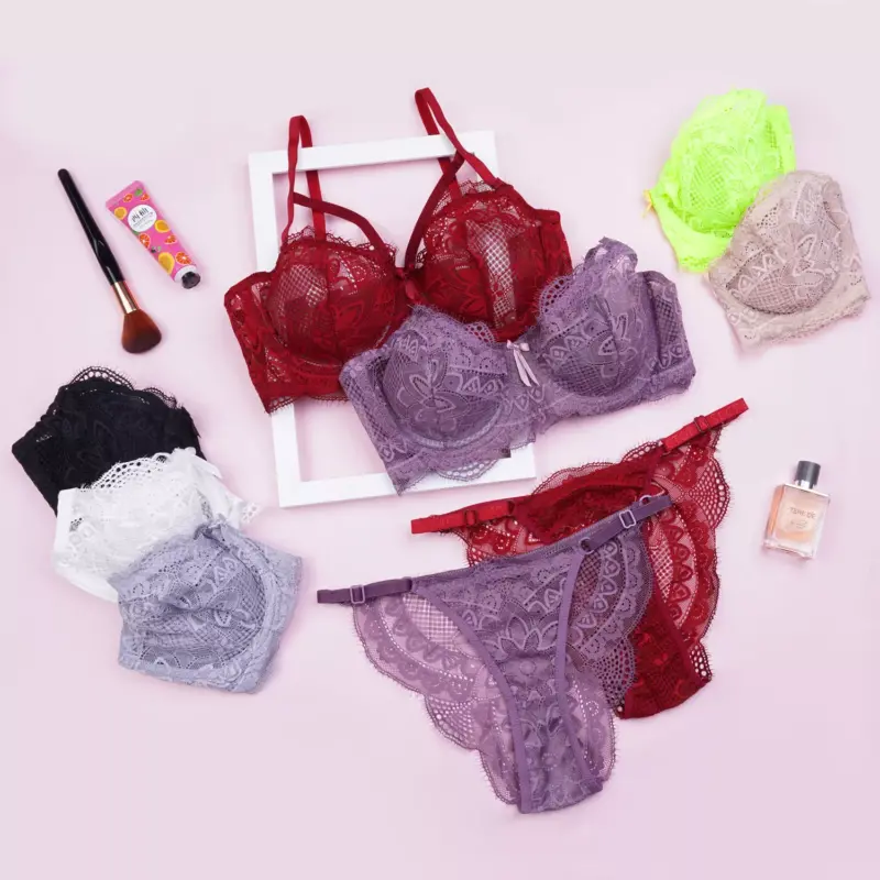 ست سوتین شورت مژه‌ای دانتل بدون لایه