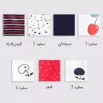 | رنگ | سرمه ای, سفید 1, سفید 2, سفید 3, سفید 4, قرمز, قرمز راه راه |