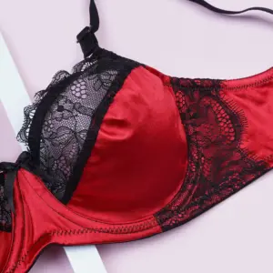 ست شارمین کد 1013 ترکیبی پرلون و تور مژه ای رنگ قرمز